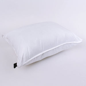 Almohada de tacto suave, durable y confortable, recupera su forma original y no se deforma. Material 100% fibra de poliéster con relleno de fibra siliconada antialérgico. Confeccionada en tela de microfibra. Soporte firme - Altura media / alta