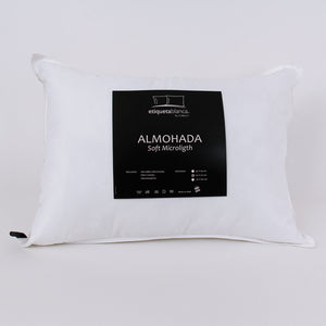 Almohada de tacto suave, durable y confortable, recupera su forma original y no se deforma. Material 100% fibra de poliéster con relleno de fibra siliconada antialérgico Confeccionada en tela de microfibra. Soporte firme - Altura media / alta