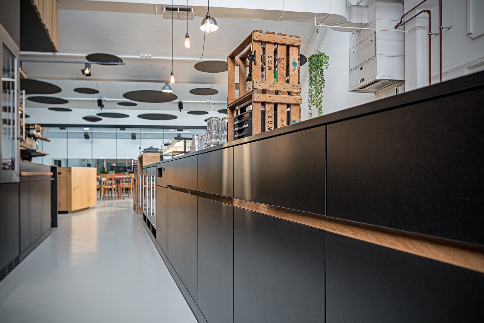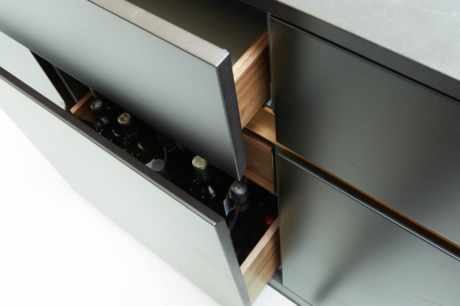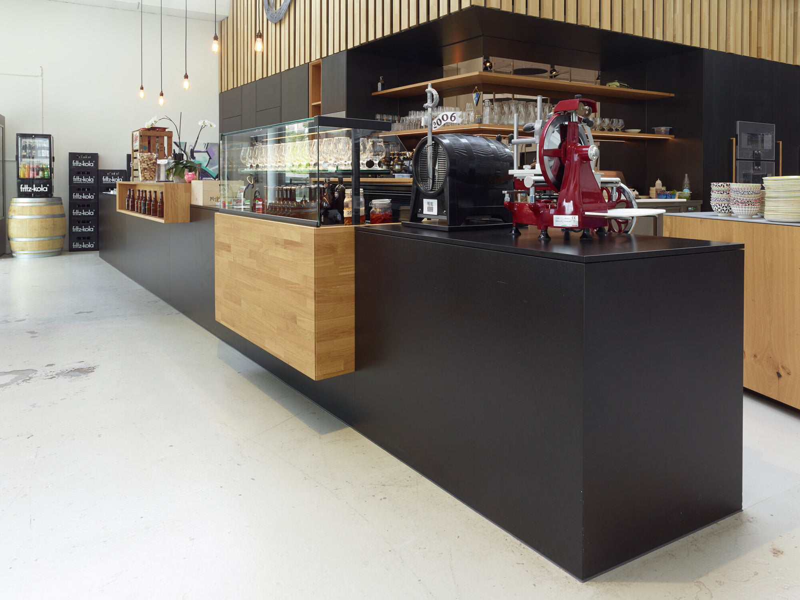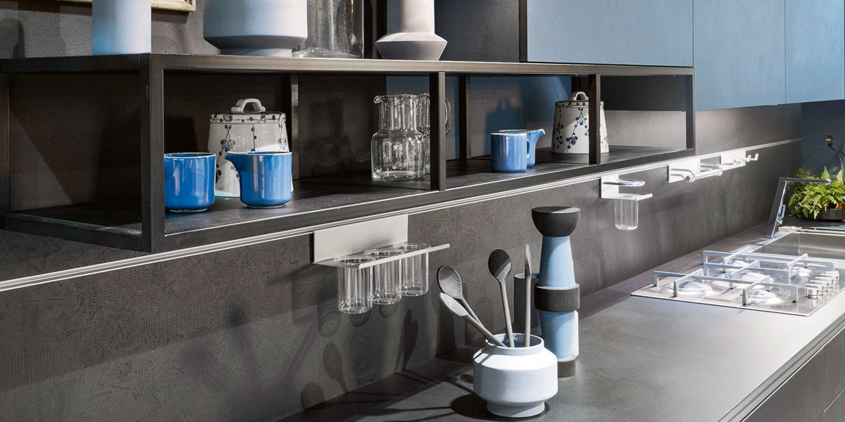- En equipamiento interior centrado en el diseño: aparadores de alta calidad, revestimientos de pared, estantes abiertos y mobiliario de oficina y escuela .