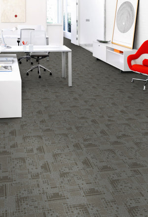 Alfombra Palmeta tipo Set In Motion Color 948 (60 x 60) 6,69mt2 x caja. La tecnología y calidad de las fibras de Nylon utilizadas en la fabricación de alfombras modulares de Feltrex permiten ofrecer productos de alta calidad y durabilidad, transformándose además en una revestimiento de piso funcional, versátil, fácil de instalar y excelente solución para la aislación termo acústica.