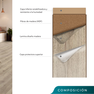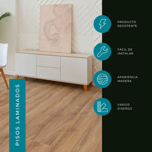 El piso Step laminado es muy resistente a la humedad y al agua, está diseñado para durar en cualquier espacio de tu hogar. Destaca su resistencia al tráfico, rápida instalación y fácil limpieza.